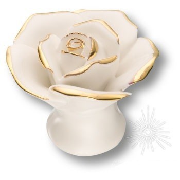 Ручка кнопка в форме розы 3060-WHITE GOLD LINES, отделка Керамика, 32*d=40 мм
